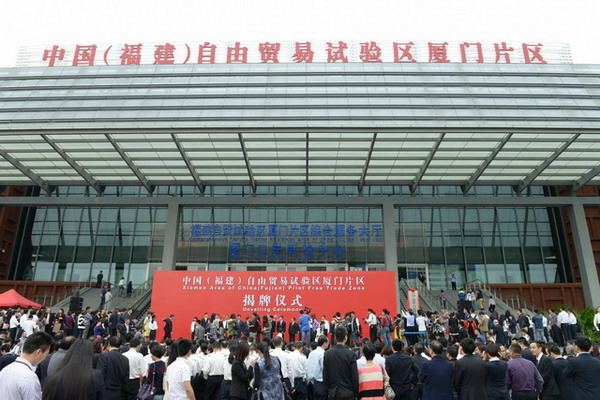 中國(福建)自由貿(mào)易試驗區(qū)廈門片區(qū)在兩岸貿(mào)易中心舉行揭牌儀式