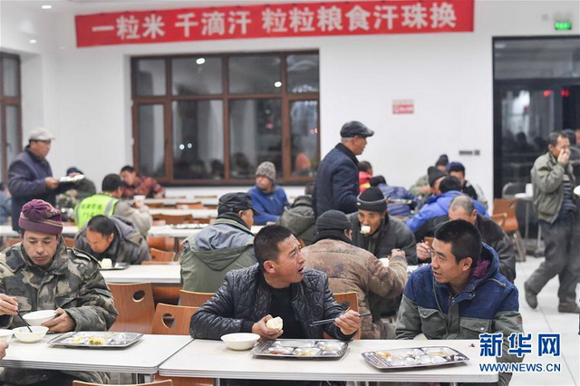 免費餐廳中,糧農們邊用晚餐邊等待過磅、卸糧、結算