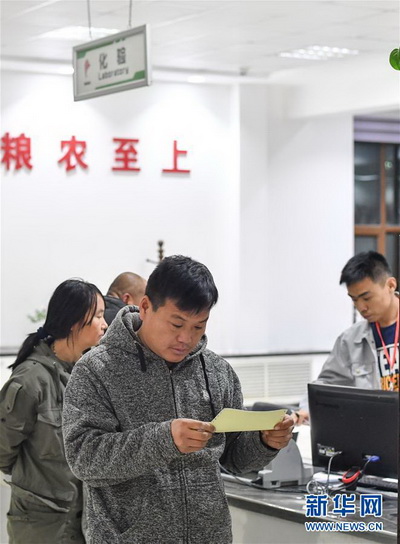 一位糧農在查看糧食化驗結果