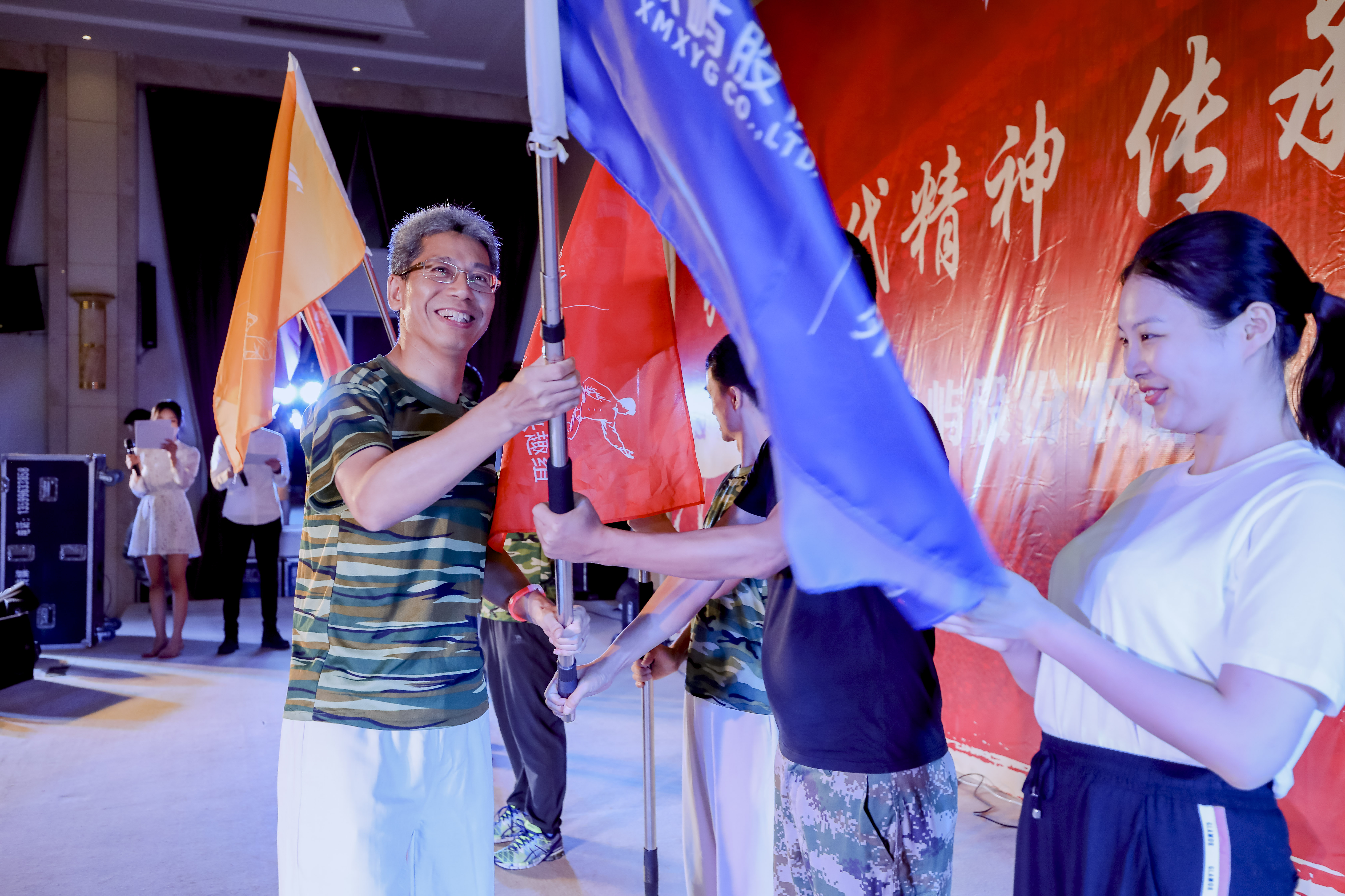 徒步活動結(jié)束當(dāng)晚,大家一起載歌載舞。聲情并茂的《人民萬歲》詩朗誦將大家又帶回那個戰(zhàn)火紛爭的年代,回首了共產(chǎn)黨人解放全中國的艱苦歷程;紅歌競唱賽環(huán)節(jié),各個小組爭先搶答,現(xiàn)場氣氛好不熱鬧;投資企業(yè)大接力則充分考驗大家對公司情況的熟悉程度,參賽者個個都實力不俗,對各地公司名稱如數(shù)家珍。當(dāng)晚,股份黨委副書記、副總經(jīng)理齊衛(wèi)東還為股份首批五個興趣小組授旗,號召更多員工積極加強(qiáng)體育鍛煉,增強(qiáng)身體素質(zhì)。